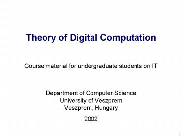 <Notice: Removed> Theory of Digital Computation PowerPoint PPT Presentation