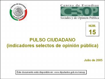 17 Encuesta Nacional para calificar al Presidente Evaluación del Poder Ejecutivo 24 al 27 de junio de 2005 Vivienda Nacional Coordinación de Investigación y Opinión Pública de El Universal El Universal, 1 de julio de 2005, pp. A1 y A9. 1000 entrevistas a mayores de edad, con 95 de confianza y / - 3.1 de margen de error.