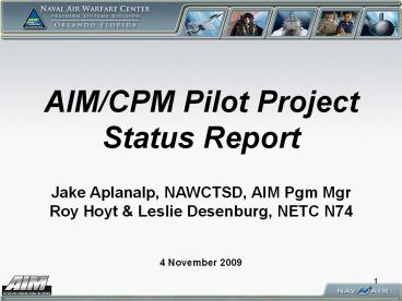 <Notice: Removed> AIM/CPM Pilot Project Status Report PowerPoint PPT Presentation