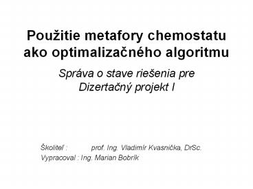 1Použitie metafory chemostatu ako optimalizacného