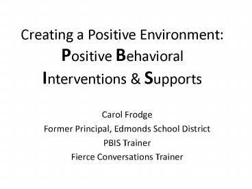 <Notice: Removed> Creating a Positive Environment: Positive Behavioral Interventions PowerPoint PPT Presentation