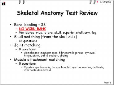 <Notice: Removed> Skeletal Anatomy Test Review PowerPoint PPT Presentation