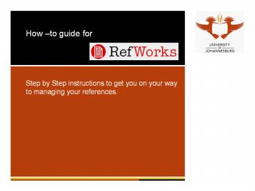 webpage www.uj.ac.za/library but can go - directly to the url www.refworks.com.