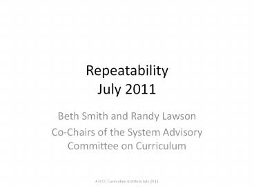 <Notice: Removed> Repeatability July 2011 PowerPoint PPT Presentation
