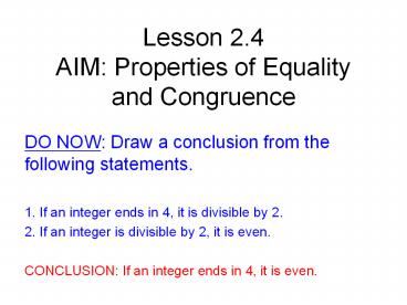 Title: Lesson 2.4 AIM: Properties of Equality and Congruence