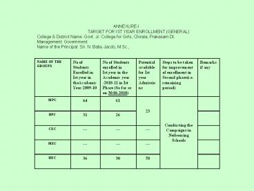 <Notice: Removed> ANNEXURE-I PowerPoint PPT Presentation