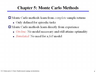 Title: Chapter 5: Monte Carlo Methods