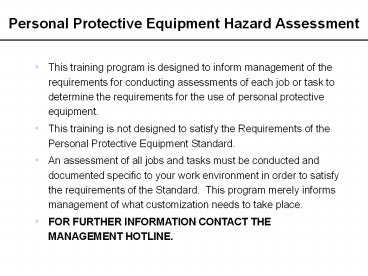 <Notice: Removed> Personal Protective Equipment Hazard Assessment PowerPoint PPT Presentation