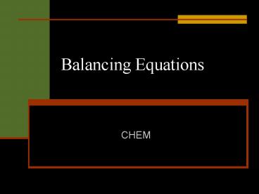 Balancing Equations PowerPoint PPT Presentation