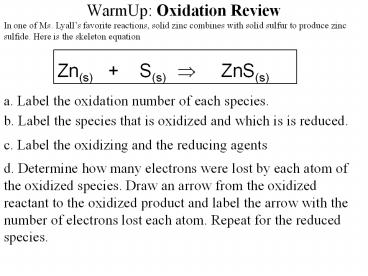 1WarmUp Oxidation Review