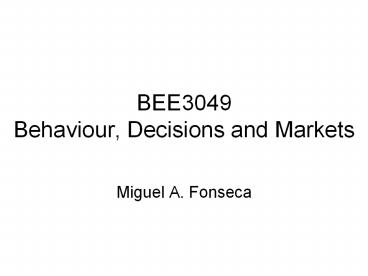 BEE3049 Behaviour, Decisions and Markets PowerPoint PPT Presentation
