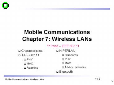 Title: Mobile Communications Chapter 7: Wireless LANs