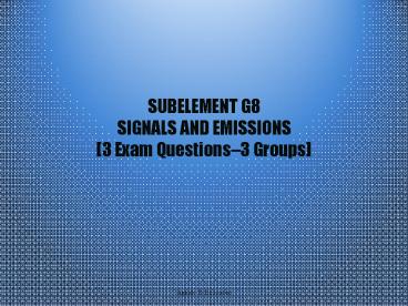 <Notice: Removed> SUBELEMENT G8 SIGNALS AND EMISSIONS [3 Exam Questions PowerPoint PPT Presentation