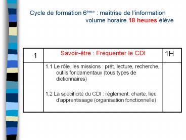1.1 Le rôle, les missions prêt, lecture, recherche, outils fondamentaux (tous types de dictionnaires) 1.2 La spécificité du CDI règlement, charte, lieu dapprentissage (organisation fonctionnelle)