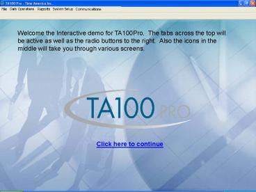 Welcome the Interactive demo for TA100Pro. The