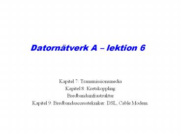 - Kapitel 9 Bredbandsaccesstekniker DSL, Cable