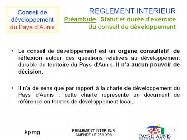 Title: REGLEMENT INTERIEUR Pr
