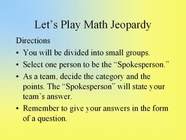 Lets Play Math Jeopardy