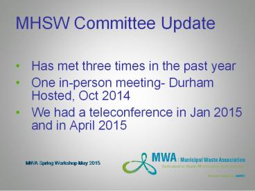 <Notice: Removed> MWA Spring Workshop May 2015 PowerPoint PPT Presentation