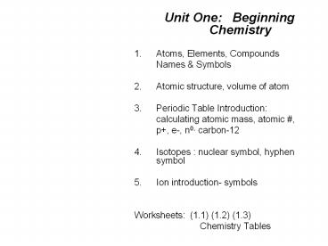 Title: Unit One: Beginning Chemistry
