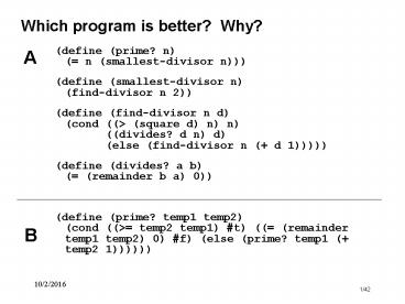 code - (define (prime? n) tests if n is prime ...