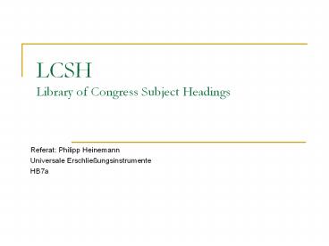 <Notice: Removed> LCSH Library of Congress Subject Headings PowerPoint PPT Presentation
