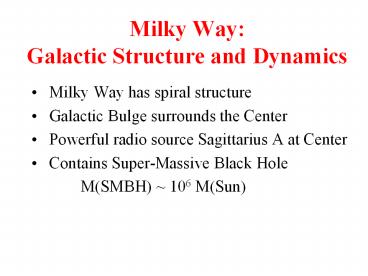 Title: Milky Way: Galactic Structure and Dynamics