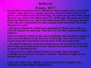 Bellwork Friday, 10/17 PowerPoint PPT Presentation
