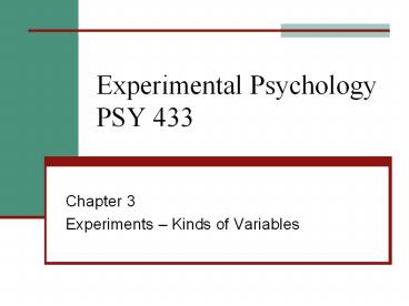 <Notice: Removed> Experimental Psychology PSY 433 PowerPoint PPT Presentation