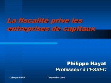 1La fiscalité prive les entreprises de capitaux