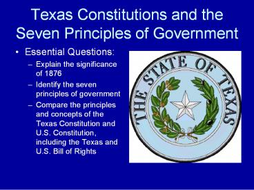 <Notice: Removed> Texas Constitutions and the Seven Principles of Government PowerPoint PPT Presentation