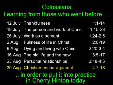 the kingdom of the Son - (from Colossians 113,118, 213)