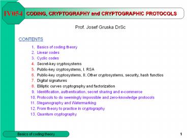 1CODING, CRYPTOGRAPHY and CRYPTOGRAPHIC PROTOCOLS