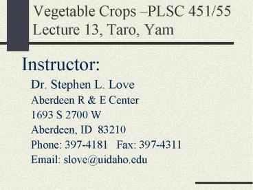 1Vegetable Crops PLSC 451/55 Lecture 13, Taro, Yam
