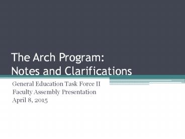 <Notice: Removed> The Arch Program: Notes and Clarifications PowerPoint PPT Presentation