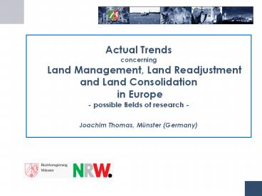 Title: Actual Trends concerning Land Management, Land Readjustment and Land Consolidation in Europe - possible fields of research - Joachim Thomas, M