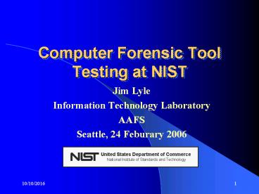 Computer Forensic Tool Testing at NIST PowerPoint PPT Presentation