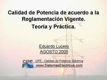 Title: Calidad de Potencia de acuerdo a la Reglamentaci