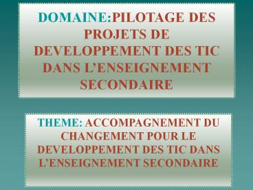 DOMAINE:PILOTAGE DES PROJETS DE DEVELOPPEMENT DES TIC DANS L PowerPoint PPT Presentation