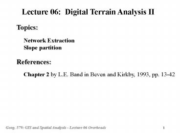Chapter 2 by L.E. Band in Beven and Kirkby, 1993,