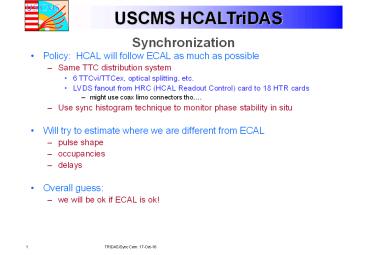 • LVDS fanout from HRC (HCAL Readout Control) card