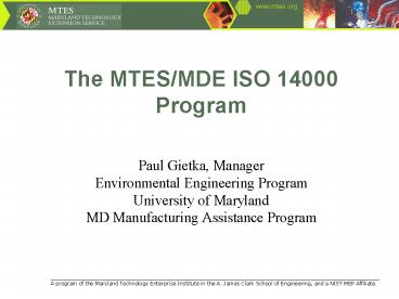 <Notice: Removed> The MTES/MDE ISO 14000 Program PowerPoint PPT Presentation