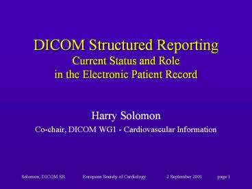 Title: Solomon,%20DICOM%20SREuropean%20Society%20of%20Cardiology2%20September%202001