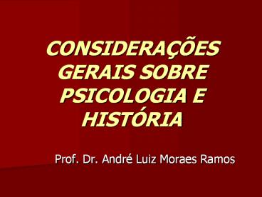 CONSIDERAÇÕES GERAIS SOBRE PSICOLOGIA E HISTÓRIA