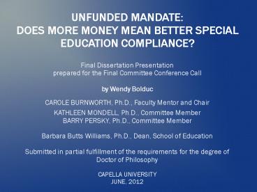 Title: UNFUNDED MANDATE: DOES MORE MONEY MEAN BETTER SPECIAL EDUCATION COMPLIANCE?