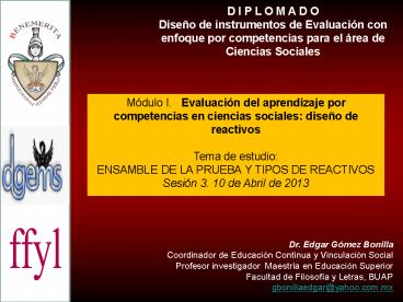 Dr. Edgar Gómez Bonilla Coordinador de Educación Continua y Vinculación Social Profesor investigador Maestría en Educación Superior Facultad de Filosofía y Letras, BUAP gbonillaedgar_at_yahoo.com.mx