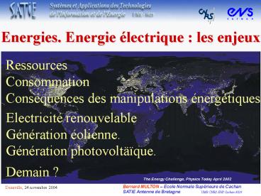 1Energies. Energie électrique les enjeux