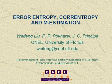 Title: ERROR ENTROPY, CORRENTROPY AND M-ESTIMATION