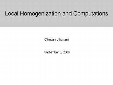 Local Homogenization and Computations PowerPoint PPT Presentation