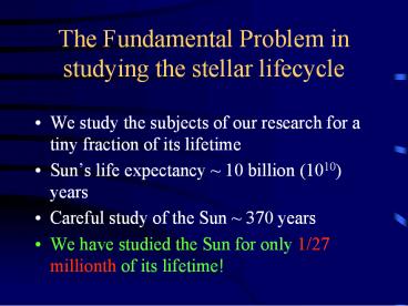 The Fundamental Problem in studying the stellar lifecycle PowerPoint PPT Presentation
